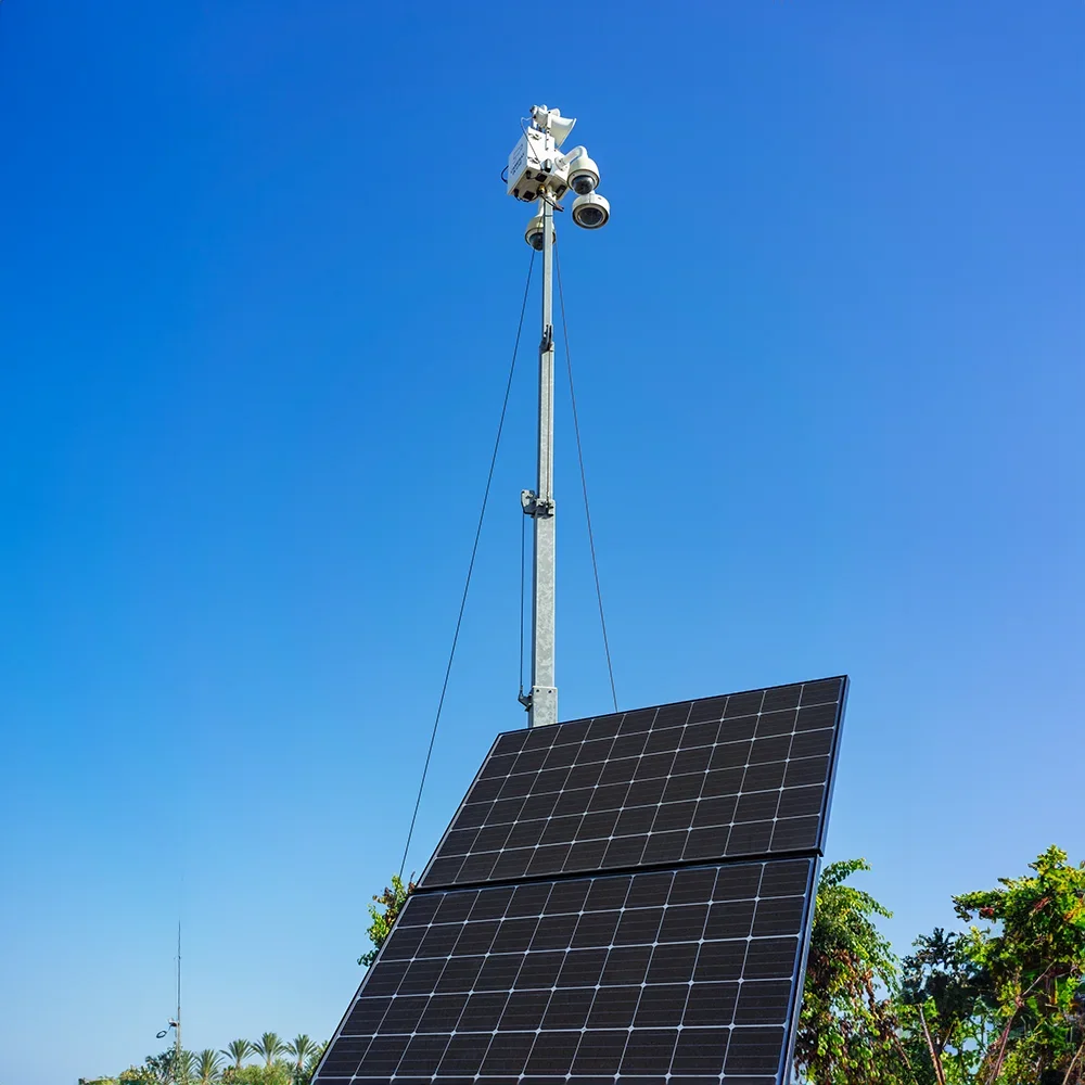 For permanent or semi-permanent sites, our surveillance poles offer a stable, high-visibility deterrent and crystal-clear monitoring. Installed quickly and customized to your layout, they provide 24/7 coverage with smart analytics that detect motion, track vehicles, and alert you to suspicious activity. Keep your assets safe, document events, and give your team the confidence to focus on the work—not the worry.